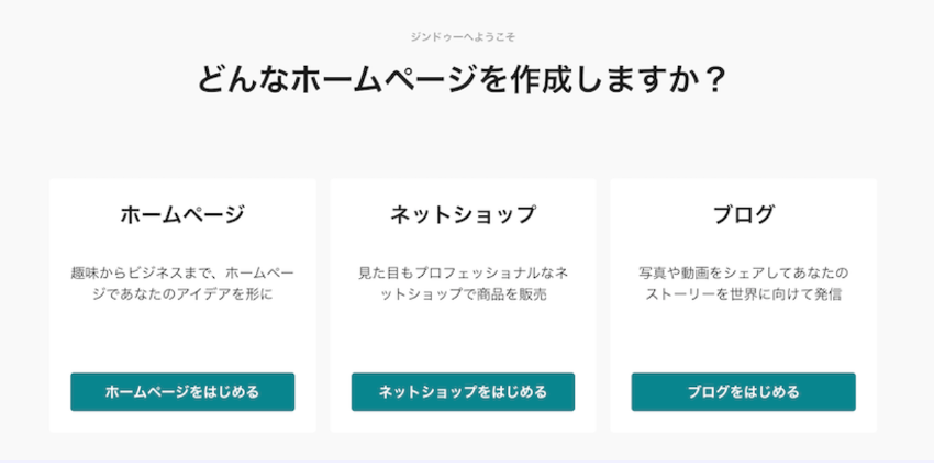 Jimdoでアカウントを作成したら、次に行うのは「ホームページの種類を選ぶ」ステップです。Jimdoでは、大きく分けて以下の3つのタイプから選ぶことができます。